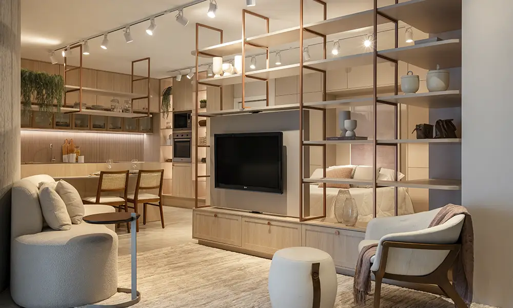 Quando iluminação e mobiliário são planejados juntos, a leitura do espaço se torna mais coerente: a luz passa a trabalhar a favor das texturas, revela nuances dos materiais e garante que cada acabamento seja percebido da forma mais fiel e harmoniosa possível.