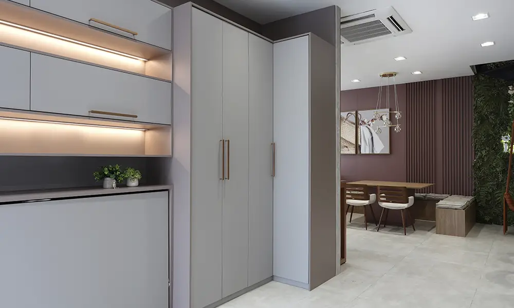 Outro ponto essencial é garantir que qualquer obra ou reforma no ambiente esteja concluída antes da instalação dos móveis planejados. Como esse tipo de mobiliário é projetado para se encaixar com precisão no espaço, alterações estruturais realizadas depois da montagem podem interferir no alinhamento e no funcionamento das peças.